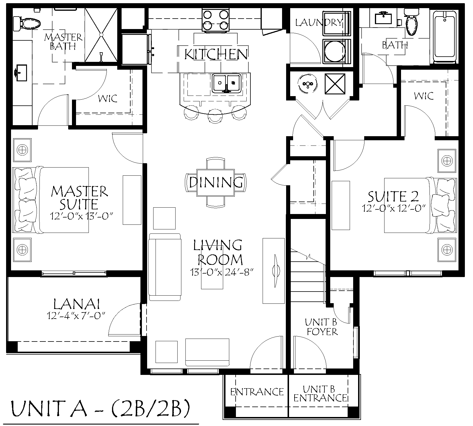 2 Bedroom layout with a private office area. . This suite is on the 2nd floor.